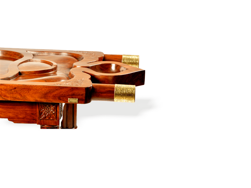 Il lettino per massaggio ayurvedico ANTIFRITE presenta un design tradizionale, tipicamente usato per gli antichi trattamenti shirodhara. Le dimensioni e le pendenze sono state appositamente studiate per consentire il miglior deflusso degli oli per il trattamento. ANTIFRITE viene interamente realizzato e scolpito a mano da maestri falegnami, partendo da assi di legno spesse 70 mm. Questo lettino è decorato da intagli su entrambi i lati e su tutte e quattro le gambe e con ornamenti in ottone sui manici. La parte superiore è staccabile e può essere disposta direttamente sul pavimento per l’esecuzione dei trattamenti che lo richiedono.